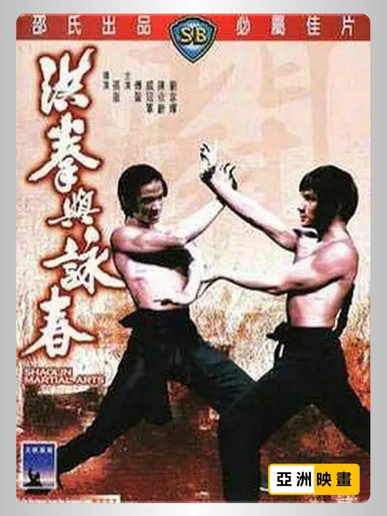 《洪拳与咏春》由武侠大导张彻执导, 唐隹及刘家良任武术指导, 故事依练功、破功的情节发展, 讲述为清廷效力的八旗武馆为对付少林子弟, 特请来高手巴刚(梁家仁)与余比(王龙威)踢平林赞田师父的少林武馆. 从武馆侥幸逃生者, 仅有麦汉(唐炎灿)、陈保荣(戚冠军)、李耀(傅声)和何振刚(刘家辉). 他们急往深山向林赞田师父求助, 林遂派麦与何跟鹰爪王学「趟地鹰爪功」及「大力鹰爪功」, 望破巴之「铁布衫」及余之气功. 可惜麦、何学成后与巴、余对战不敌身亡. 林再派李、陈练虎鹤双形拳和咏春拳…